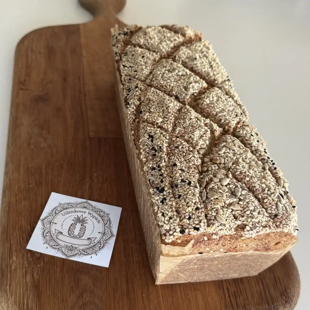Każdy bochenek przechodzi spokojny proces – od przygotowania kiełków, przez tworzenie masy, aż po wyrastanie i pieczenie. To chleb, który powstaje w rytmie czasu i uważności, a nie pośpiechu.