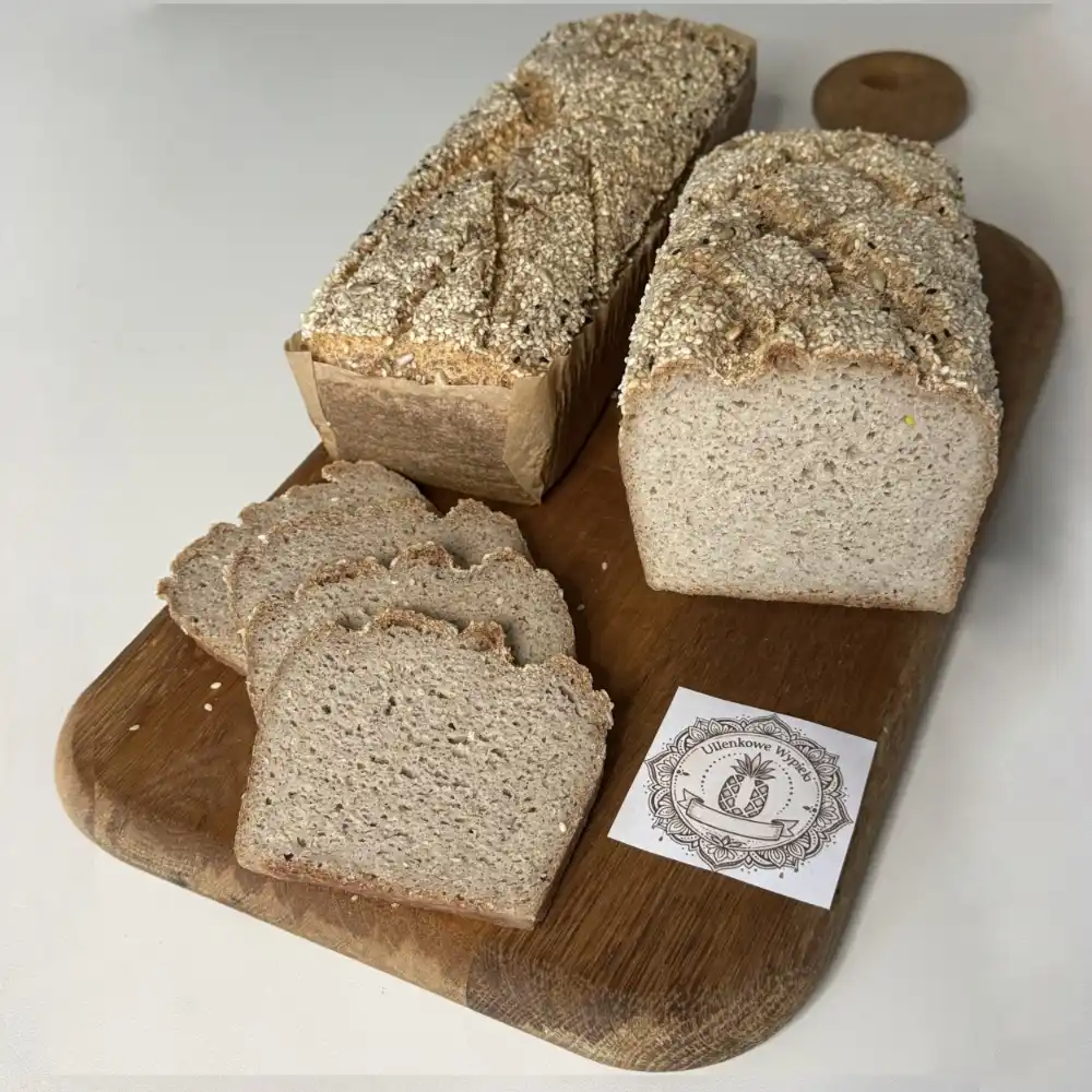 Największy bochenek z tej serii. Przygotowywany z kiełkowanej kaszy gryczanej z dodatkiem komosy ryżowej.
