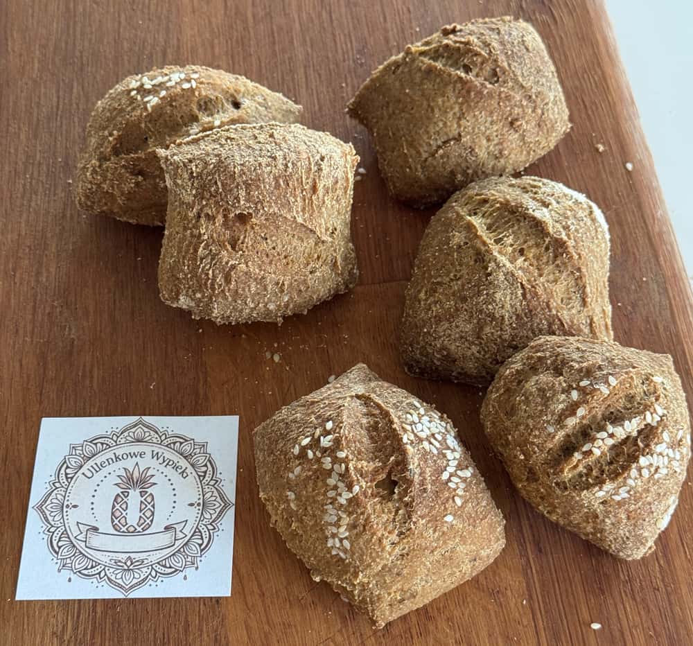 Każda bagietka i każda bułka powstaje z tego samego uważnego procesu – od przygotowania kiełków, przez stworzenie masy, aż po formowanie, wyrastanie i pieczenie. To spokojna, ręczna praca, w której liczy się czas i dokładność, dlatego Komosianki są nie tylko wygodne w codziennym użyciu, ale też niosą w sobie tę samą jakość i uważność, co większe bochenki.